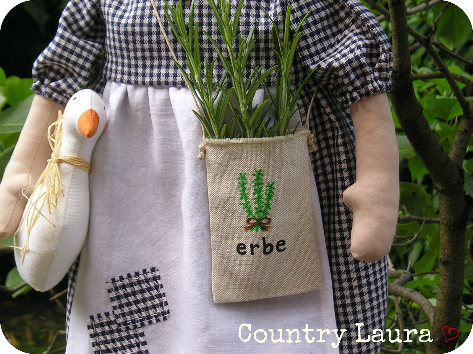 Queste tue contadinelle sono un'amore! Mi piacciono un sacco, tutte coordinate, con tanto di taschina portaerbe e con un animaletto, in questo caso, un'ochetta. Deliziose è dire poco! SUPERBRAVISSSSSSSIMA. Paola